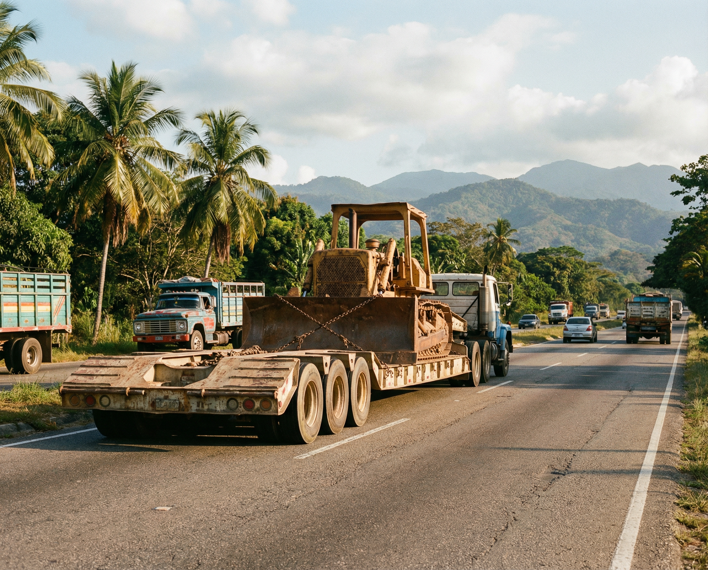 Remolque de cama baja para transporte seguro de maquinaria pesada.