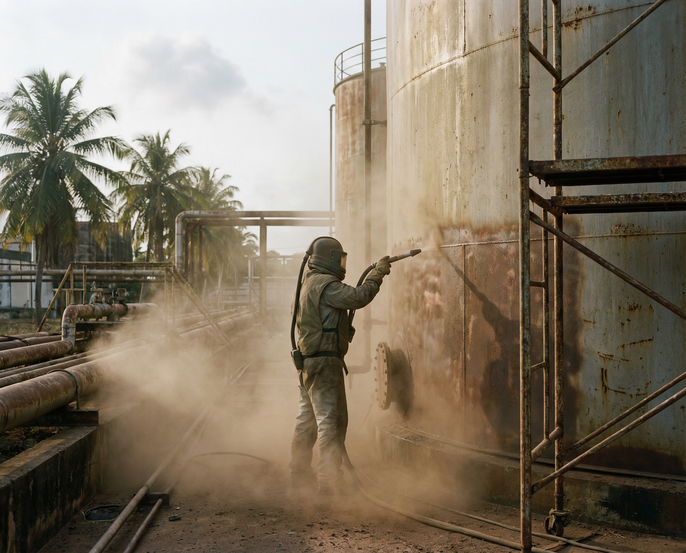Equipos para limpieza abrasiva y recubrimiento protector de superficies metálicas.