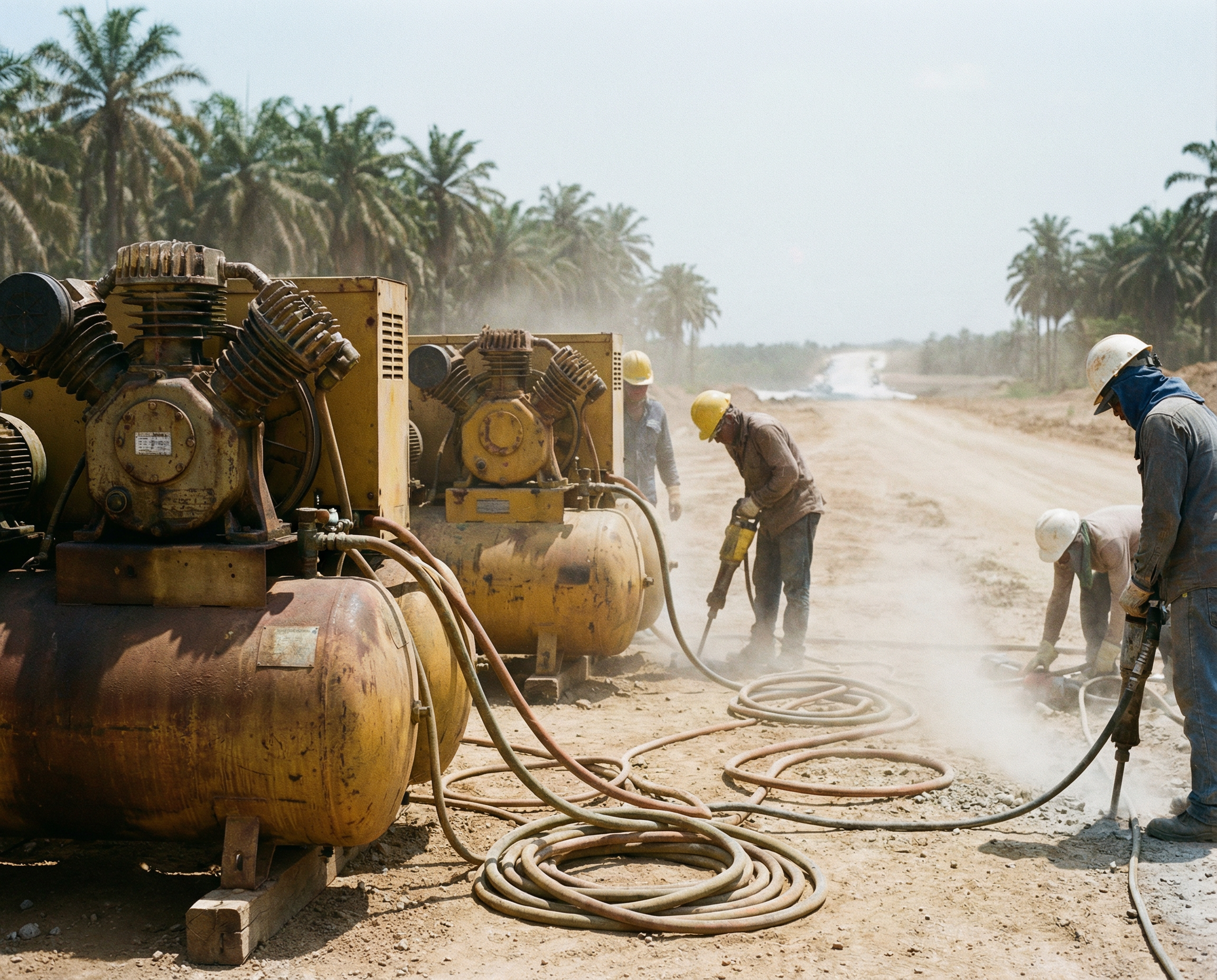 Equipos generadores de aire comprimido para herramientas neumáticas y procesos industriales.